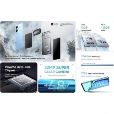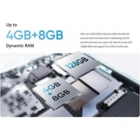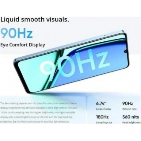 Смартфон realme Note 60 представляет собой современное устройство, которое сочетает в себе передовые технологии и стильный дизайн.