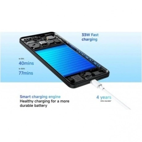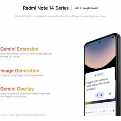Xiaomi Redmi Note 14 — это стильный смартфон с большим экраном и высоким разрешением. Устройство оснащено ярким и четким AMOLED дисплеем с диагональю 6.67 дюйма и разрешением 2400x1080 пикселей, который обеспечивает отличное качество изображения и комфортное использование. Смартфон работает на базе операционной системы Android 14 с фирменной оболочкой HyperOS, которая предлагает удобный и интуитивно понятный интерфейс. Xiaomi Redmi Note 14 оснащен мощным процессором MediaTek Helio G99 Ultra, что обеспечивает быструю и плавную работу устройства. Смартфон также имеет большой объем оперативной памяти LPDDR4X, что позволяет ему легко справляться с многозадачностью и запускать требовательные приложения. Тройная основная камера позволяет делать качественные и яркие фотографии и видео. Устройство также поддерживает функции искусственного интеллекта, которые помогают улучшить качество изображений и видео. Смартфон имеет емкий аккумулятор на 5500 мАч, что обеспечивает длительное время работы без подзарядки. Xiaomi Redmi Note 14 также поддерживает быструю зарядку мощностью 33 Вт, что позволяет быстро восстановить заряд батареи.