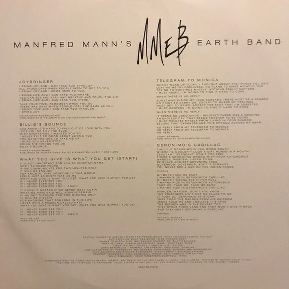 Joybringer (From Jupiter), Billies Orno Bounce, What You Give Is What You Get (Start), Rivers Run Dry, Planets Schmanets, Geronimo's Cadillac, Sister Billie's Bounce, Telegram To Monica, Couple Of Mates (From Mars And Jupiter), Neptune (Icebringer), Hymn (From Jupiter), We're Going Wrong