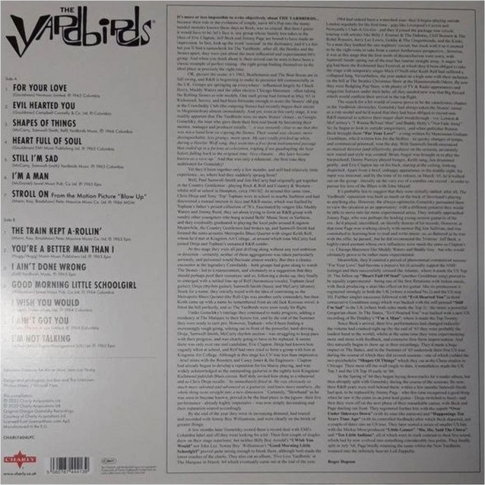 Сборник лучших вещей одной из самых успешных и влиятельных британских групп шестидесятых. Этот всеобъемлющий обзор группы основан на записях, которые сформировали звучание The Yardbirds в решающий период их существования с 1963 по 1966 год. Издание на цветном виниле.. Отличительный и новаторский блюзовый стиль Эрика Клэптона присутствует в половине этих треков, а Джефф Бек и его новаторский стиль развязного, пронзительного психоделического рока занимает лидирующие позиции среди остальных. В сборник вошли хиты группы того времени, в том числе топ-10 синглов Shapes Of Things, For Your Love, Still Im Sad и Heart Full Of Soul, а также Stroll On из саундтрека к культовому фильму 1960-х годов «Blow-Up», написанный Херби Хэнкоком.