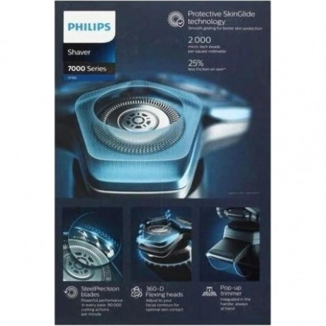 Бритва серии Philips S7000 плавно скользит по коже, обеспечивая гладкое бритье даже 3-дневной щетины. Благодаря технологии SkinIQ бритва автоматически настраивает бритье для максимального комфорта кожи, а также предлагает рекомендации по бритью.