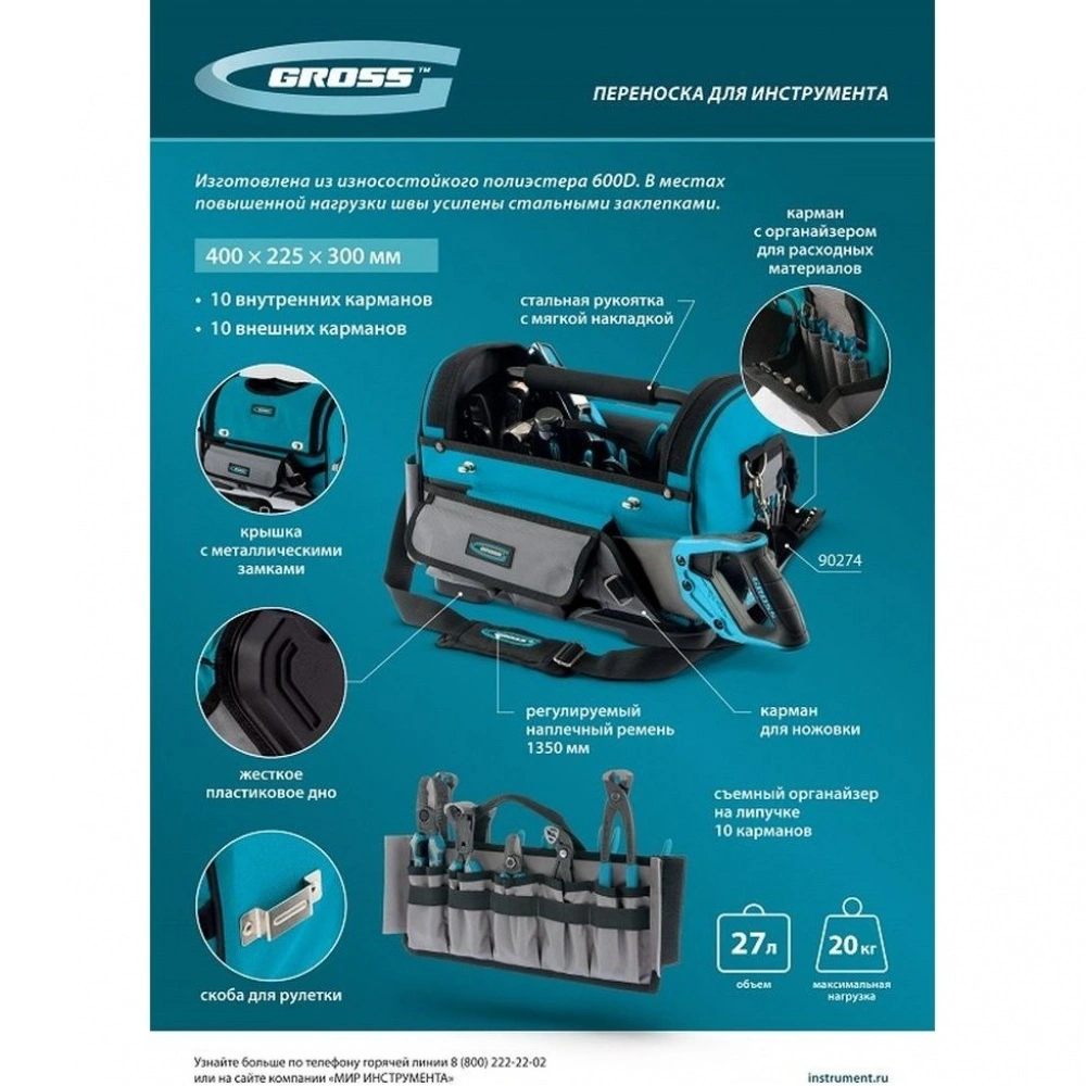 Переноска для инструмента, 400х225х300мм, пластиковое дно, наплечный ремень Gross - этот товар вы можете купить по цене 3887 руб. в интернет-магазине КотоФото. Характеристики, описание товара, фото и цена представлены на карточке товара. Заказать товар вы можете по телефону 8(812)426-98-99 в Санкт-Петербурге.
