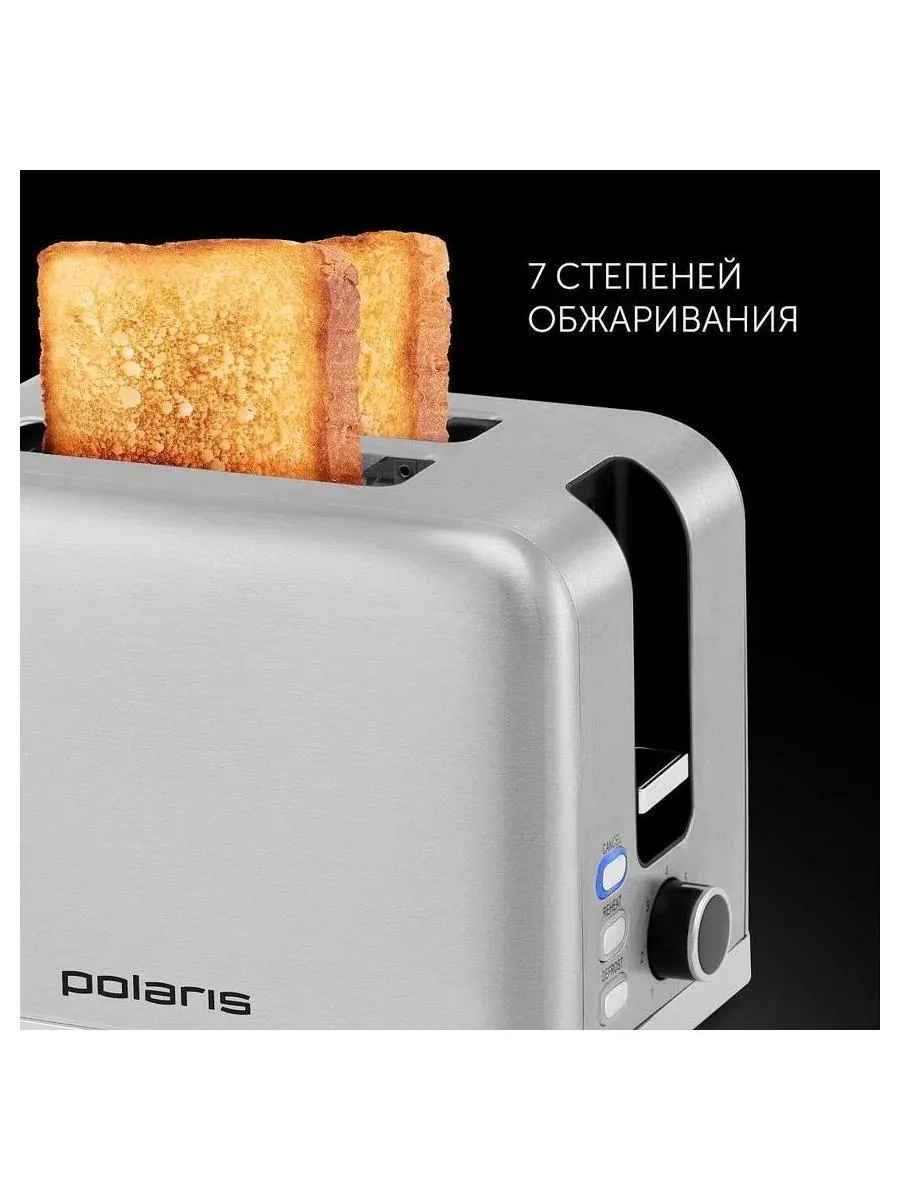 Тостер POLARIS PET 0923 имеет мощность в 930 Вт и электронное управление. Имеется 2 отделения для тостов. Всего представлено 7 степеней обжарки, что позволит с легкостью выбрать свой вариант. Предусмотрена функция автоцентрирования тостов, что обеспечивает равномерное прожаривание хлеба. К другим особенностям тостера POLARIS PET 0923 можно отнести функции подогрева и размораживания. Здесь так же есть выдвижной лоток, куда собираются хлебные крошки. Предусмотрена возможность подогрева уже готовых тостов. При работе тостера корпус не нагревается. В нем предусмотрен отсек для хранения сетевого шнура.