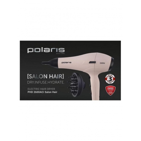 Фен для волос PHD 2600AСi Salon Hair – это профессиональный уход, как в салоне. Полноценный мощный фен с мягким покрытием корпуса Soft Touch имеет 3 температурных и 2 скоростных режима. Профессиональный АС мотор увеличивает срок службы фена и создает мощный поток воздуха для быстрого результата сушки волос. Встроенный генератор ионов работает как антистатик, увлажняет, сохраняет яркость цвета, предотвращает сечение на кончиках. Отрицательно заряженные ионы смягчают воздействие горячего воздуха и снижают вред регулярных укладок. Фен с генератором ионов бережно защищает волосы от обезвоживания и пересушивания в 4 раза лучше по сравнению с фенами с турмалиновой ионизацией. Режим Colour Defence - щадящий режим сушки бережно сушит сухие, поврежденные волосы и сохраняет насыщенный цвет и сияние окрашенных волос (на 2-ом температурном режиме). Волосы приобретают красивый здоровый вид. Создайте идеальный образ с легкостью благодаря мощному фену, который станет вашим верным спутником дома или в путешествии. Профессиональный фен для волос обладает высокой мощностью 2600 W, обеспечивая быстрое высыхание волос, что особенно ценно утром в спешке. С помощью насадки-концентратор и расчёски-брашинг можно создать ровные и гладкие локоны, как будто вы только что посетили парикмахерскую. Узкая насадка-концентратор для выпрямления волос и стайлинга отдельных прядей. Диффузор формирует структурные локоны и/или придает дополнительный объем у корней. Кнопка холодного обдува Cool Air Jet для закрепления укладки. Съемная решетка-фильтр защищает фен от загрязнений. Удобная петля для подвешивания на корпусе, в комплектацию добавлен мешок для хранения.