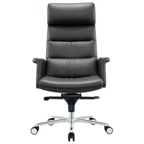 Кресло руководителя CS-LBK-AMSTERDAM с обивкой из натуральной кожи черного цвета напоминает своим дизайном модели известных итальянских производителей.