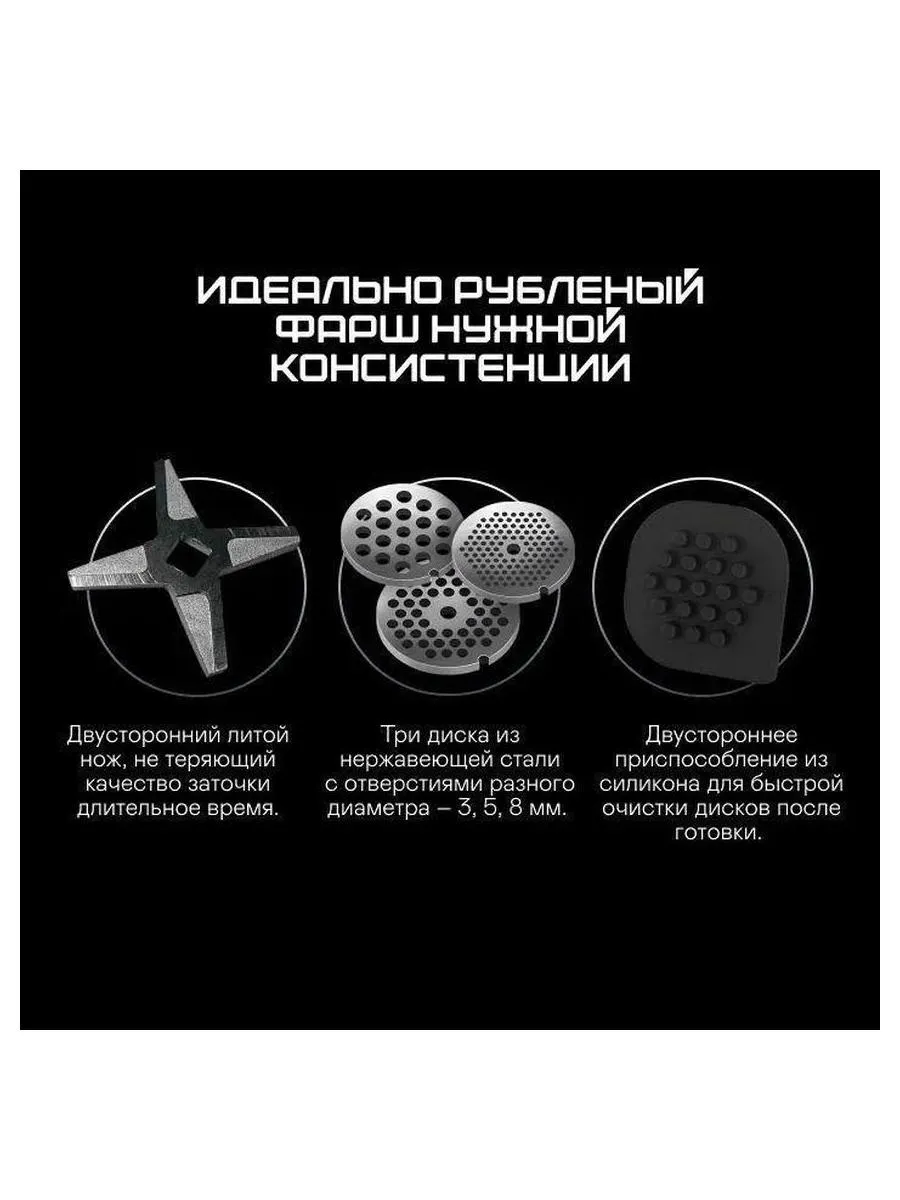 литой стальной нож с двусторонней заточкой, металлическое соединение шнека и двигателя, ещё