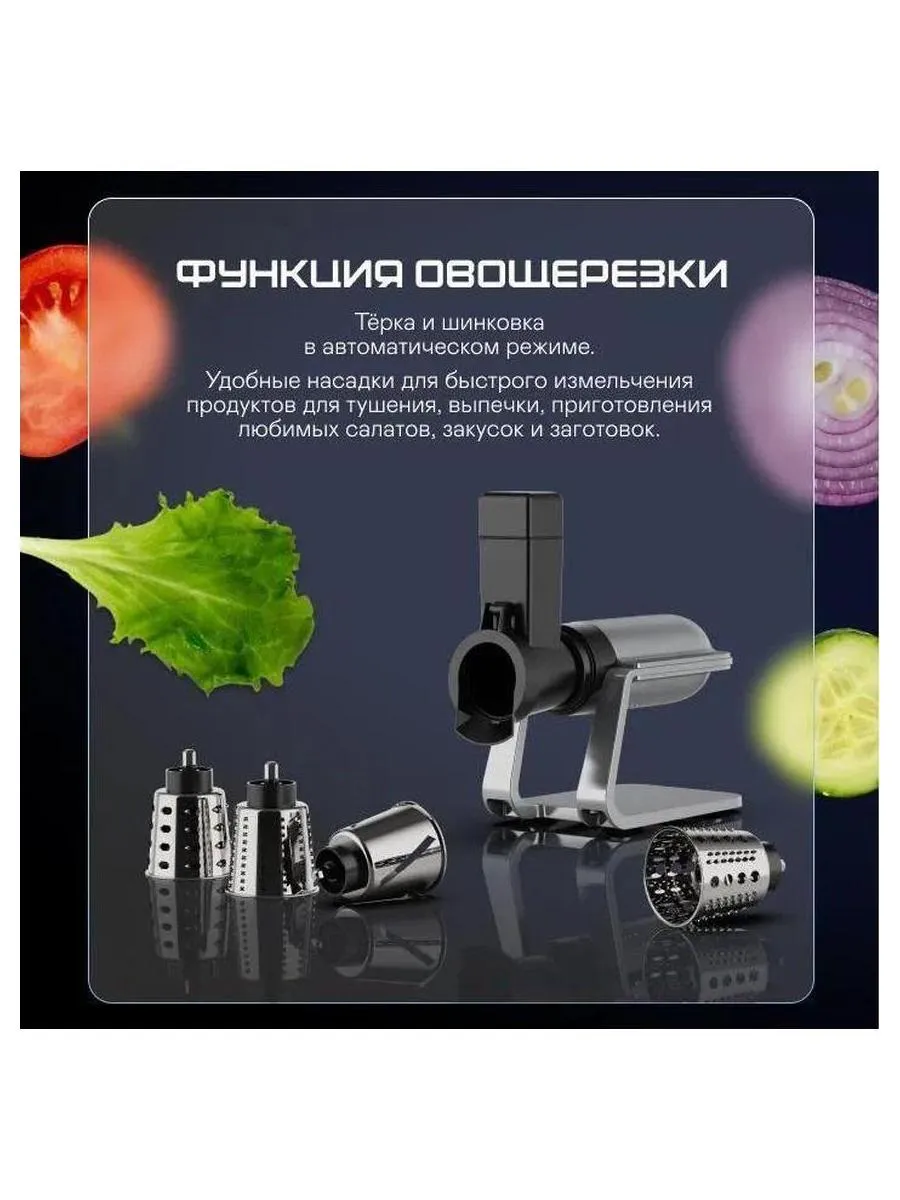 мясорубка, блок мясорубки, блок овощерезки, блок соковыжималки, документация, загрузочный лоток - 2 шт., крышка, ещё, аксессуары, документация, упаковка