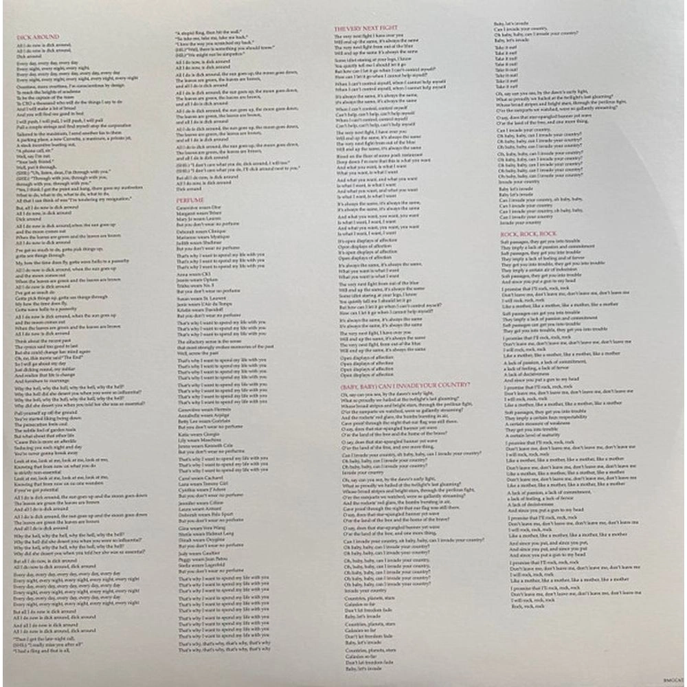 Dick Around, Perfume, The Very Next Fight, (Baby, Baby) Can I Invade Your Country, Rock, Rock, Rock, Metaphor, Waterproof, Here Kitty, Aliens, The Notre Dame Cathedral