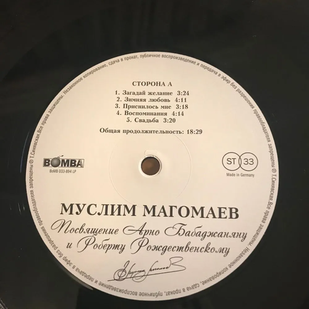 Отзывы о товаре Магомаев Муслим - Посвящение Бабаджаняну и Рождественскому (4640004136907) виниловая пластинка