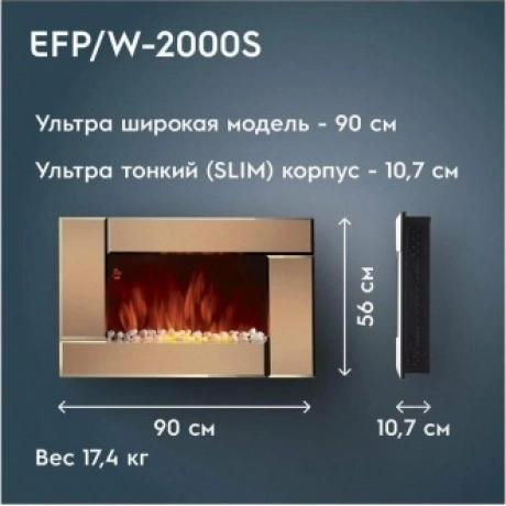 Настенный камин Electrolux EFP/W-2000S Bronze НС-1233827 Bronze с лицевой панелью из настоящего зеркала теплого бронзового оттенка станут восхитительным украшением любого интерьера.