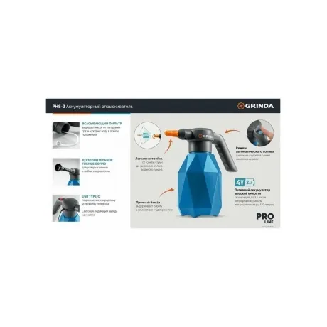Описание товара Опрыскиватель аккумуляторный GRINDA 2 л, PROLine (PHS-2)