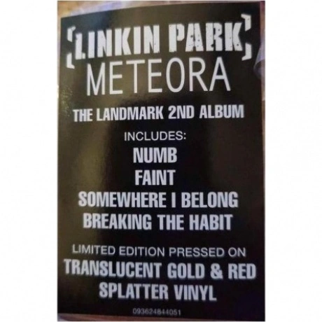 Переиздание второго студийного альбома "Meteora" американской рок-группы Linkin Park, выпущенного первоначально в 2003 году. Лимитированное издание на цветном виниле. Meteora, новаторский второй альбом Linkin Park, был выпущен в марте 2003 года и включал в себя глобальные хиты «Somewhere I Belong», «Faint», «Numb», «Breaking The Habit» и «From The Inside». В США было продано более 8 миллионов копий, и он получил мультиплатиновый, платиновый или золотой статус в 15 странах.