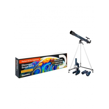 Набор Levenhuk Discovery Scope 3 – это микроскоп, телескоп и бинокль в одном комплекте. Кроме оптических приборов в набор входит более 30 аксессуаров и книга знаний «Космос. Непустая пустота». Набор создан специально для тех, кто раньше не имел дела с оптической техникой и хочет попробовать свои силы сразу в нескольких направлениях науки. Благодаря красивой упаковке набор можно преподнести в подарок.