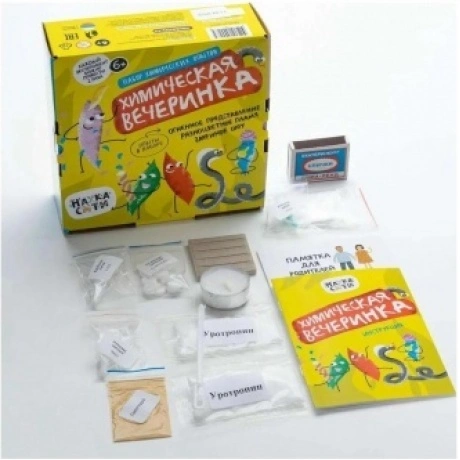 Детям, которые любят учиться, точно понравится познавательный набор «Химическая вечеринка». А тех, которые пока не любят, эти опыты впечатлят и подтолкнут к серьезной учебе.
