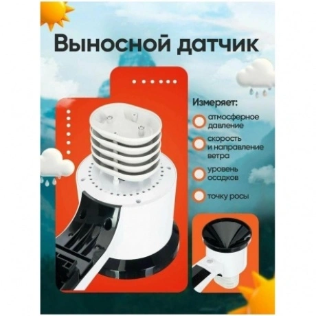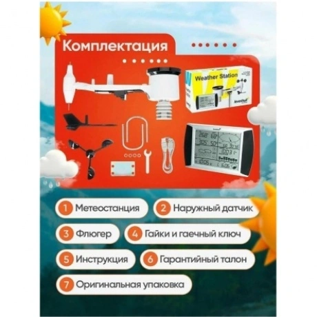 дождемер, анемометр/ветромер, часы, будильник, календарь