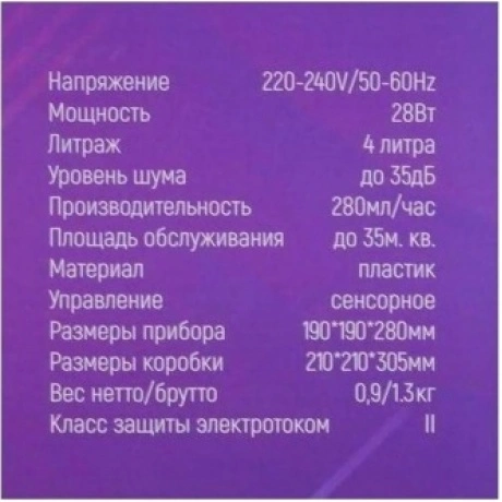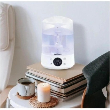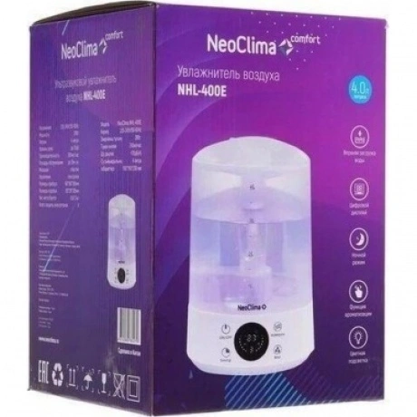 Увлажнитель воздуха NeoClima NHL-400E с ультразвуковым принципом действия поможет поддерживать благоприятный и здоровый микроклимат в помещении. Он оборудован вместительным резервуаром емкостью 4 литра, который при полном наполнении водой обеспечивает до 13 часов непрерывного увлажнения. На корпусе расположены панель управления с цифровым дисплеем, интуитивными сенсорными кнопками и индикаторами режимов. Таймер позволяет запрограммировать определенное время работы прибора. Среди прочих особенностей NeoClima NHL-400E отмечаются ночной режим, ароматизация воздуха и подсветка корпуса.