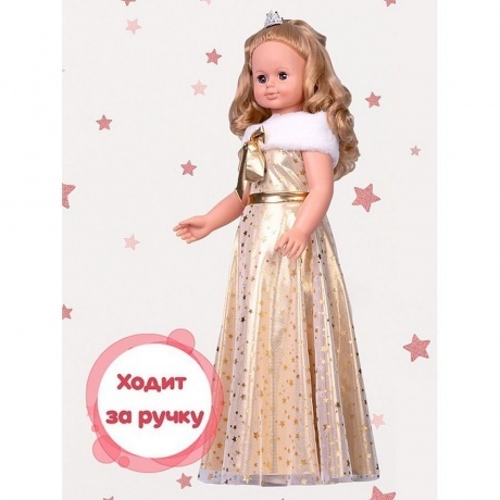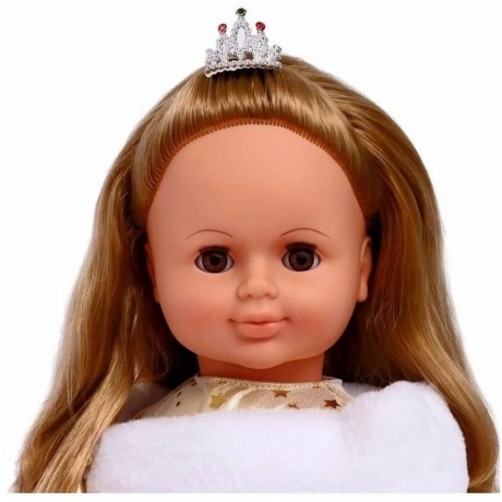 Кукла Снежана Праздничная 5 – загадочная принцесса в красивом праздничном наряде, которая может стать любимой игрушкой для ребёнка. Рост куклы 83 см. Озвучена. Глаза вставные закрывающиеся. Цвет глаз может варьироваться. Ручки и голова выполнены из эластичного, приятного на ощупь винила, а туловище и ноги из пластмассы. Кукла оснащена механизмом движения, её можно водить за руку. Инструкция прилагается к кукле. Во избежание поломки механизма движения куклы её не рекомендуется усаживать. В спинку куклы вставлено звуковое устройство, список звуковых фраз может варьироваться. В комплект одежды входит: длинное платье из двух слоем ткани, меховая накидка с бантом из парчи, диадема, трусики. Комплект дополняют туфли. Игровые и дидактические возможности куклы: Кукла озвучена, говорит несколько фраз (до 8 фраз), активирующих к игровой деятельности. Наличие элементов одежды, которые легко снимаются и надеваются, разнообразит возможности сюжетно-ролевых игр с этой куклой, в процессе которых развивается мелкая моторика и творческое воображение ребёнка. Прекрасные прошитые волосы из качественного нейлона, похожие на натуральные, можно завивать, расчёсывать, укладывать в разные причёски, меняя образ куклы. Кукла Снежана Праздничная 5 соответствует Техническому регламенту Таможенного Союза о безопасности игрушки.