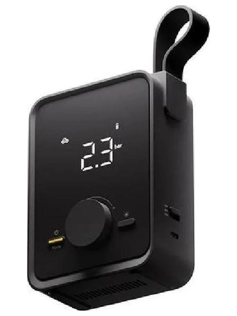 компактный и портативный автомобильный компрессор для быстрого накачивания шин с автоматической остановкой и цифровым дисплеем.