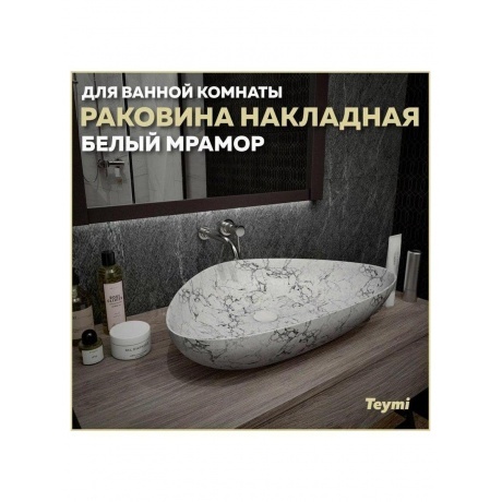 Описание товара Раковина Teymi Ellie 60 накладная, Белый Мрамор T50598