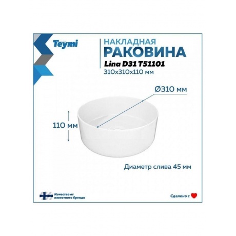 Описание товара Раковина Teymi Lina D31 накладная, белая T51101