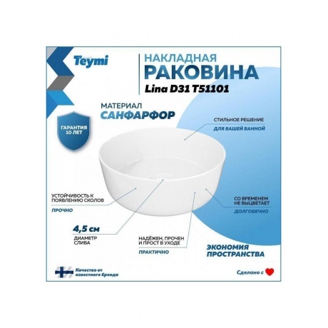Отзывы о товаре Раковина Teymi Lina D31 накладная, белая T51101
