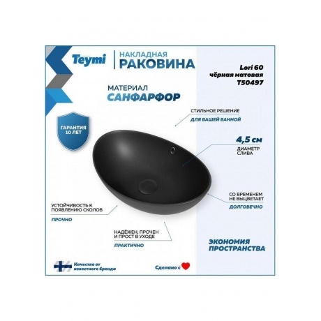 Описание товара Раковина Teymi Lori 60 накладная, Черная матовая T50497