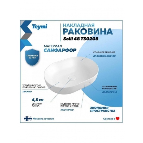 Отзывы о товаре Раковина Teymi Solli 48 artceramic, накладная, белая T50208