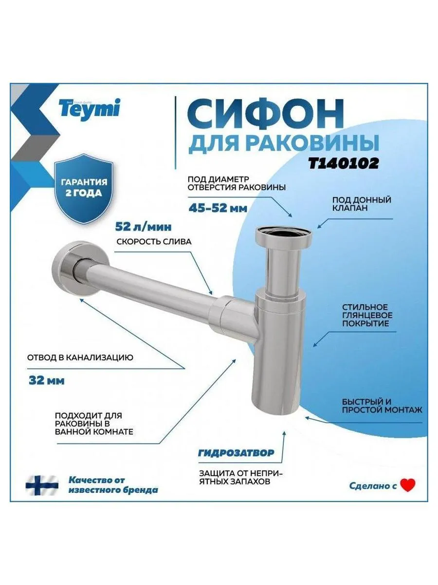 Сифон Teymi для раковины, хром T140102 купить с доставкой в Санкт-Петербурге