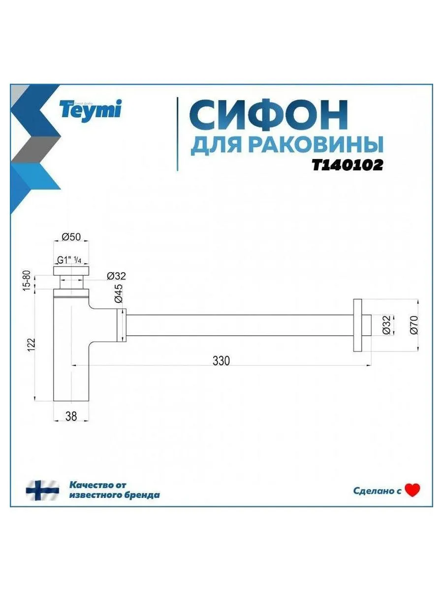 Отзывы о товаре Сифон Teymi для раковины, хром T140102