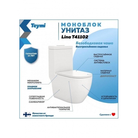 Отзывы о товаре Унитаз напольный Моноблок Teymi Lina безободковый, сиденье микролифт T41102