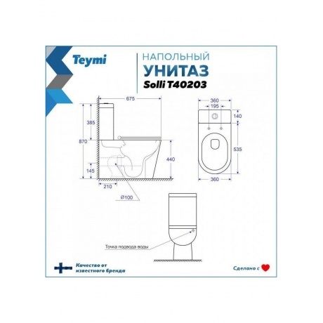 Описание товара Унитаз напольный Teymi Solli безободковый, сиденье микролифт T40203