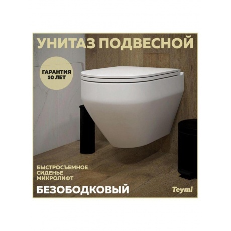 • Унитаз подвесной Teymi Demi безободковый, сиденье микролифт T40208 - фото 14