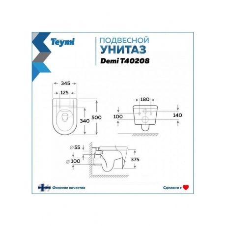 Отзывы о товаре Унитаз подвесной Teymi Demi безободковый, сиденье микролифт T40208