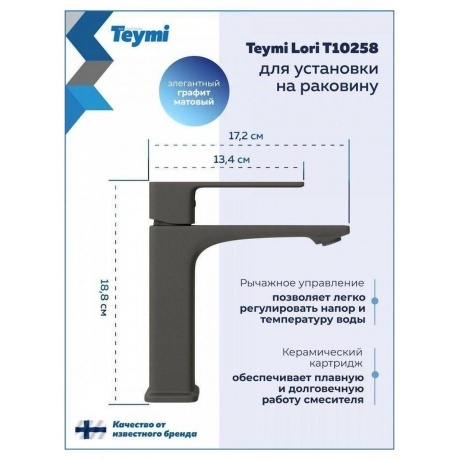 Смеситель для раковины Teymi Lori, графит матовый T10258 - фото, характеристики, описание и цена представлены на карточке товара. Для того, чтобы сразу узнать о поступлении этого товара в наш интернет-магазин, вам надо подписаться на уведомление по email, оставив адрес своей электронной почты в форме выше на данной странице.