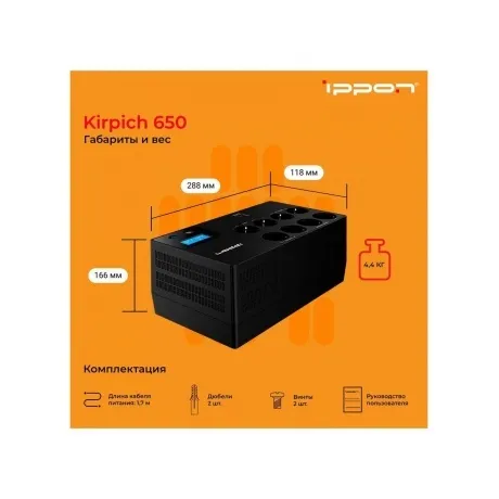 Описание товара Источник бесперебойного питания Ippon Kirpich 650 360Вт 650ВА черный