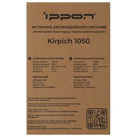 Описание товара Источник бесперебойного питания Ippon Kirpich 1050 600Вт 1050ВА черный
