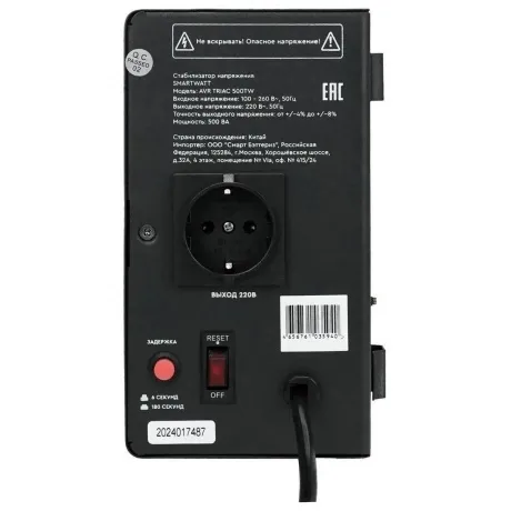 Описание товара Стабилизатор напряжения Smartwatt AVR Triac 500TW 500ВА черный