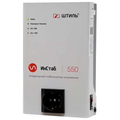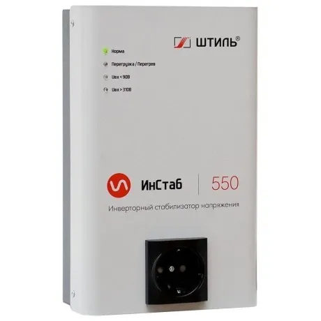 Стабилизатор напряжения Штиль ИнСтаб IS550 - это однофазный инверторный стабилизатор, предназначенный для защиты маломощных электроприборов, таких как газовые котлы, аудио-видео аппаратура и компьютеры. Он обеспечивает постоянный, чистый синусоидальный сигнал выходного напряжения, высокую точность стабилизации и бесшумную работу.