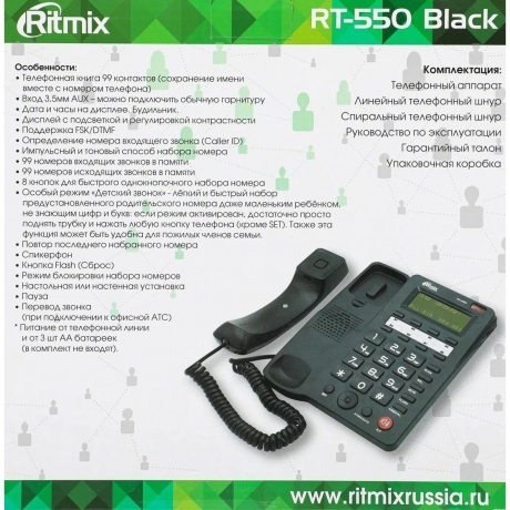 Телефон проводной Ritmix RT-550 черный - фото, характеристики, описание и цена представлены на карточке товара. Для того, чтобы сразу узнать о поступлении этого товара в наш интернет-магазин, вам надо подписаться на уведомление по email, оставив адрес своей электронной почты в форме выше на данной странице.