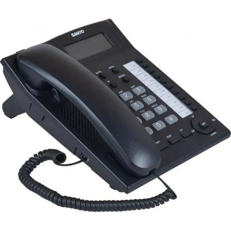 Стационарный телефонный аппарат SANYO RA-S517B это офисный вариант телефона с максимальным набором функций. Большой ЖК дисплей и отличный спикерфон, а также прграммируемые клавищи быстрого набора. Цвет чёрный. Подключается к двухпроводной аналоговой линии. Питание от линии. Не требует программирования.