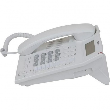 Стационарный телефон SANYORA-S517W для совершения исходящих и приема входящих голосовых звонков. Телефонный проводной аппарат со спикерфоном занимает мало места и обладает необходимым функционалом телефонии. Набор последнего номера, световой индикатор вызова, три уровня регулировки громкости, тональный и импульсный режим набора номера абонента. ЖК дисплей с часами, подсветка экрана с возможностью настройки контрастности, будильник, журнал звонков, отключение микрофона, удержание вызова и кнопка паузы для комфорта во время работы. Лаконичный белый дизайн базы подойдет для предприятий бизнеса или небольшого домашнего офиса. Кнопочный аналоговый телефон можно использовать как настольный, так и как настенный офисный вариант. Легкая и маленькая модель устройства станет прекрасным дополнением на рабочем месте сотрудников.