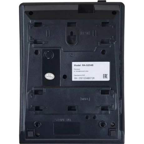 Стильный и простой телефон чёрного цвета. Сбалансированный набор самых необходимых функций. Подключается к двухпроводной аналоговой линии. Питание от линии. Не требует программирования. Удобная резиновая клавиатура с кнопками круглой формы отвечает современным требованиям, предъявляемым к подобной технике. Конструкцией корпуса сразу предусмотрена установка на стену. Качество и громкость звука находятся на высоком уровне для техники подобного рода. Громкость звонка регулируется в трёх диапазонах. Прочный, лёгкий аппарат занимает не много места на столе.
