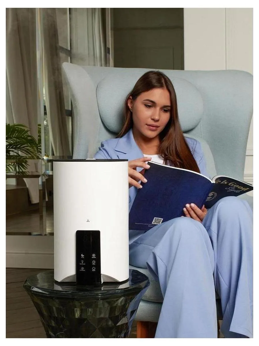 Увлажнитель футуристического дизайна с большим дисплеем, смарт-управлением и функцией обработки воды ультрафиолетом, что эффективно препятствует распространению бактерий. Прибор не потревожит тишину Вашего дома, благодаря бесшумной работе. Устройство рассчитано на комнату площадью 20 м2, а резервуар в 3 литра позволит заливать воду всего два раза в день даже при круглосуточной работе. Мобильное приложение увеличит возможности использования увлажнителя, включая дистанционное управление.