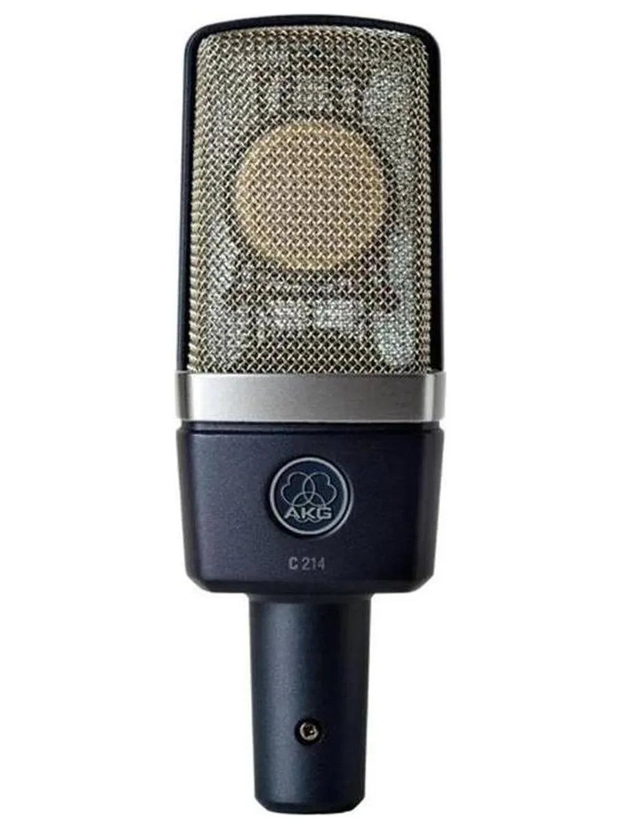 Конденсаторный кардиоидный студийный микрофон AKG C214 прекрасно справляется с высоким давлением медных духовых инструментов или гитарных усилителей, и в то же время способен уловить нюансы дыхания вокала и оттенки оркестрового звука.
