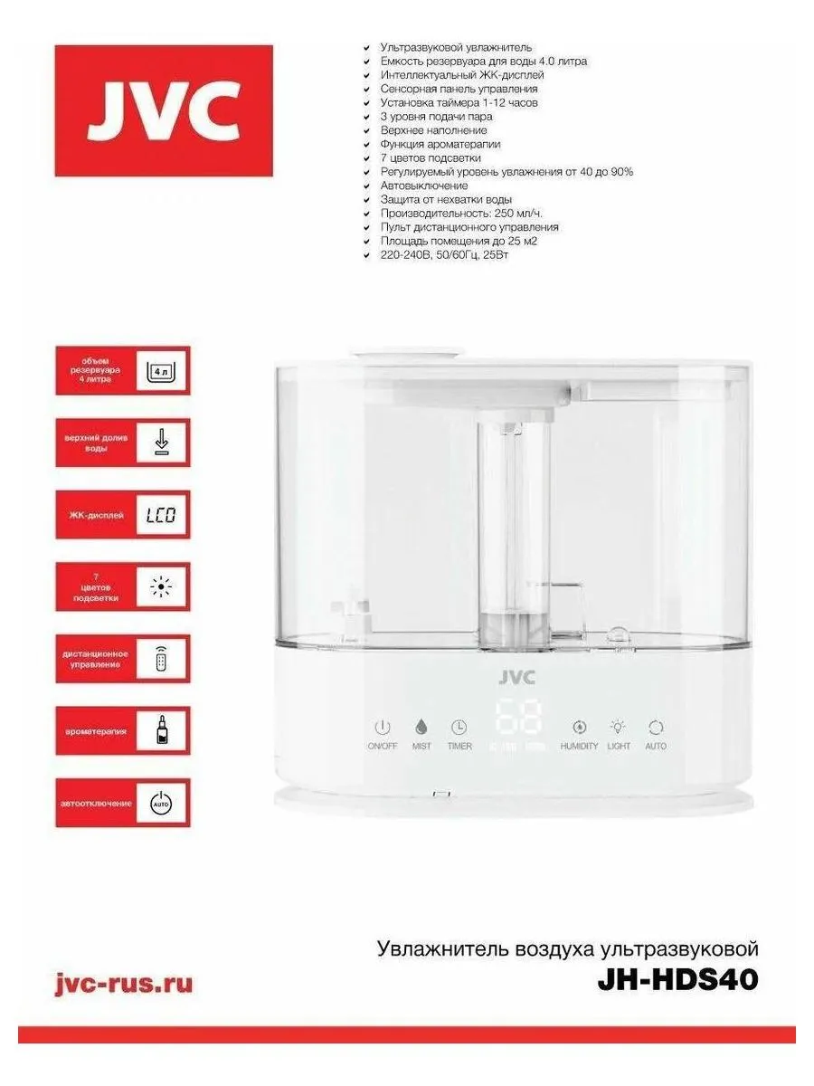 Описание товара Увлажнители воздуха JVC JH-HDS40