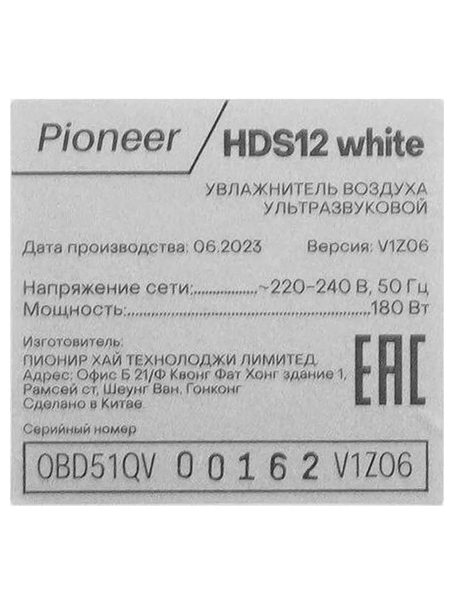 Описание товара Увлажнители воздуха Pioneer HDS12 белый