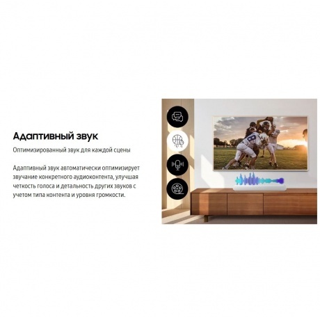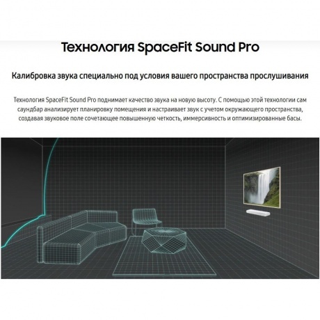 Наслаждайтесь звуком Dolby Atmos сверху и вокруг без использования кабелей HDMI. Идеально синхронизированный звук телевизора и звуковой панели Samsung HW-S61D обеспечивает идеальный уровень погружения. Получите наполняющий комнату звук, откалиброванный в соответствии с вашим пространством, с помощью звуковой панели, которая анализирует окружающую среду и автоматически оптимизирует звук соответствующим образом.