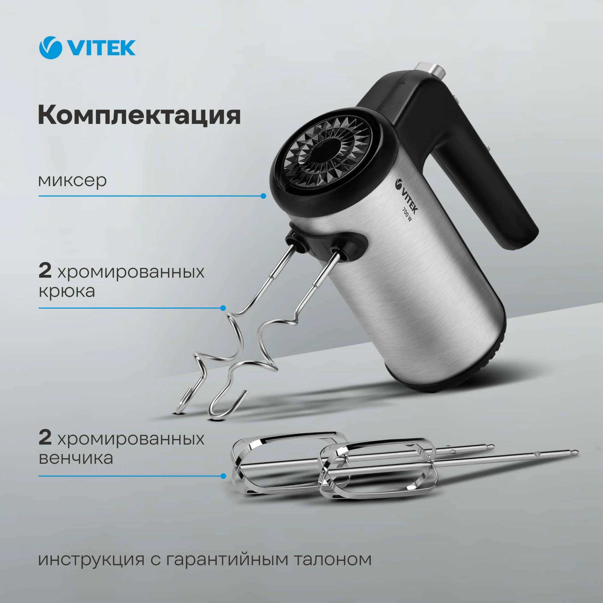 Описание товара Миксер ручной Vitek VT-1411 Metropolis 700Вт серебристый/черный