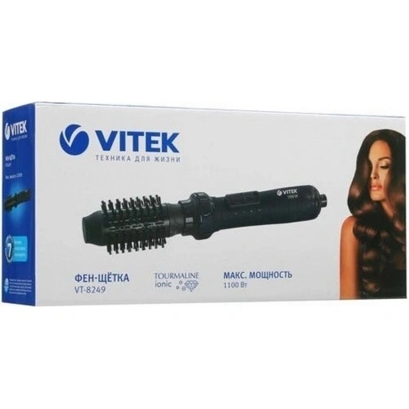 Фен-щетка Vitek VT-8249 ? функциональный прибор, удобный для повседневного использования. Он поможет легко сделать любую укладку, высушить, выпрямить волосы, приподнять их у корней, придав ухоженный вид волосам. Обладая мощностью 1100 Вт, устройство использует щетку, которая может вращаться в обе стороны. Особенность фена в независимой регулировке скорости и нагрева воздуха. Предусмотрено 3 режима скорости и температуры.