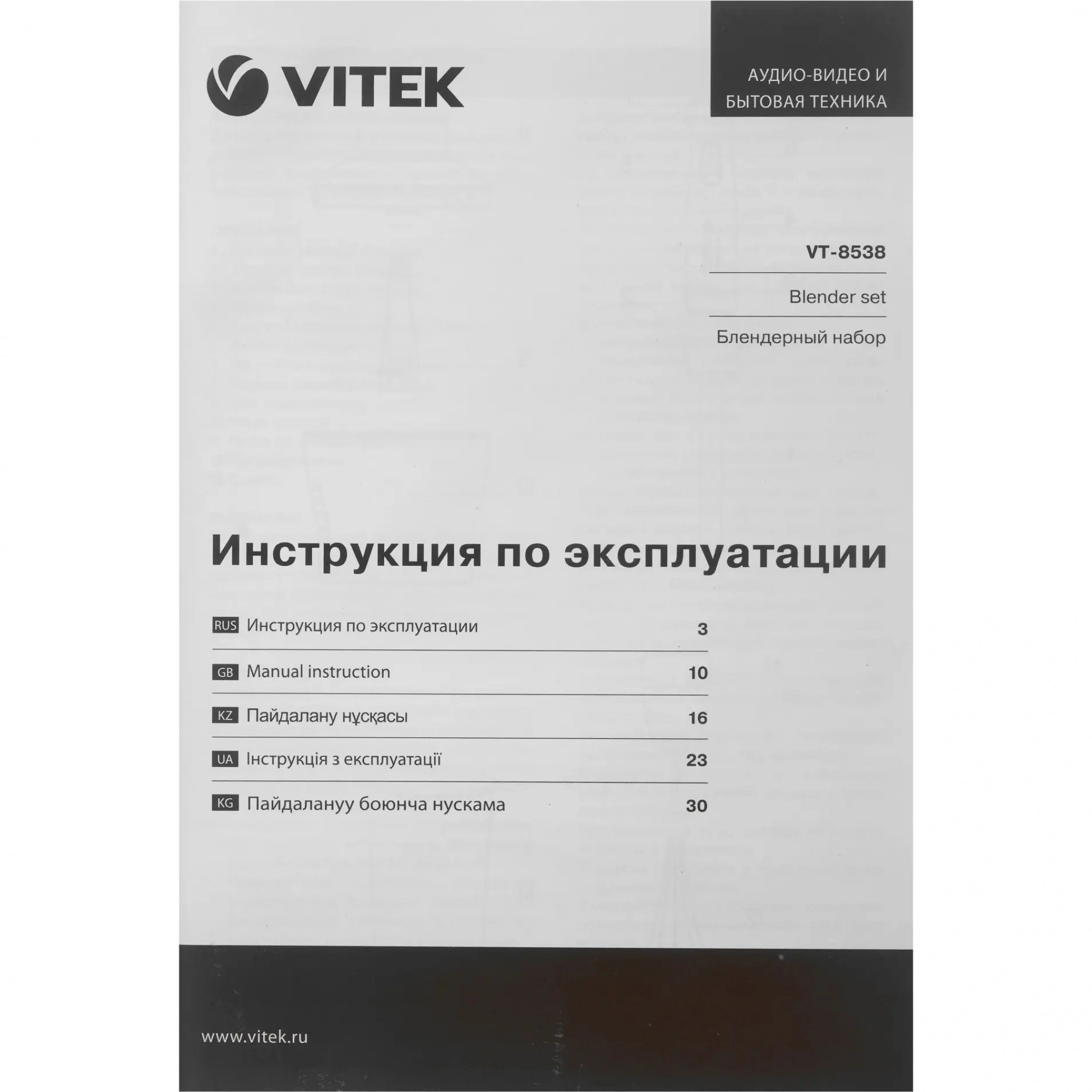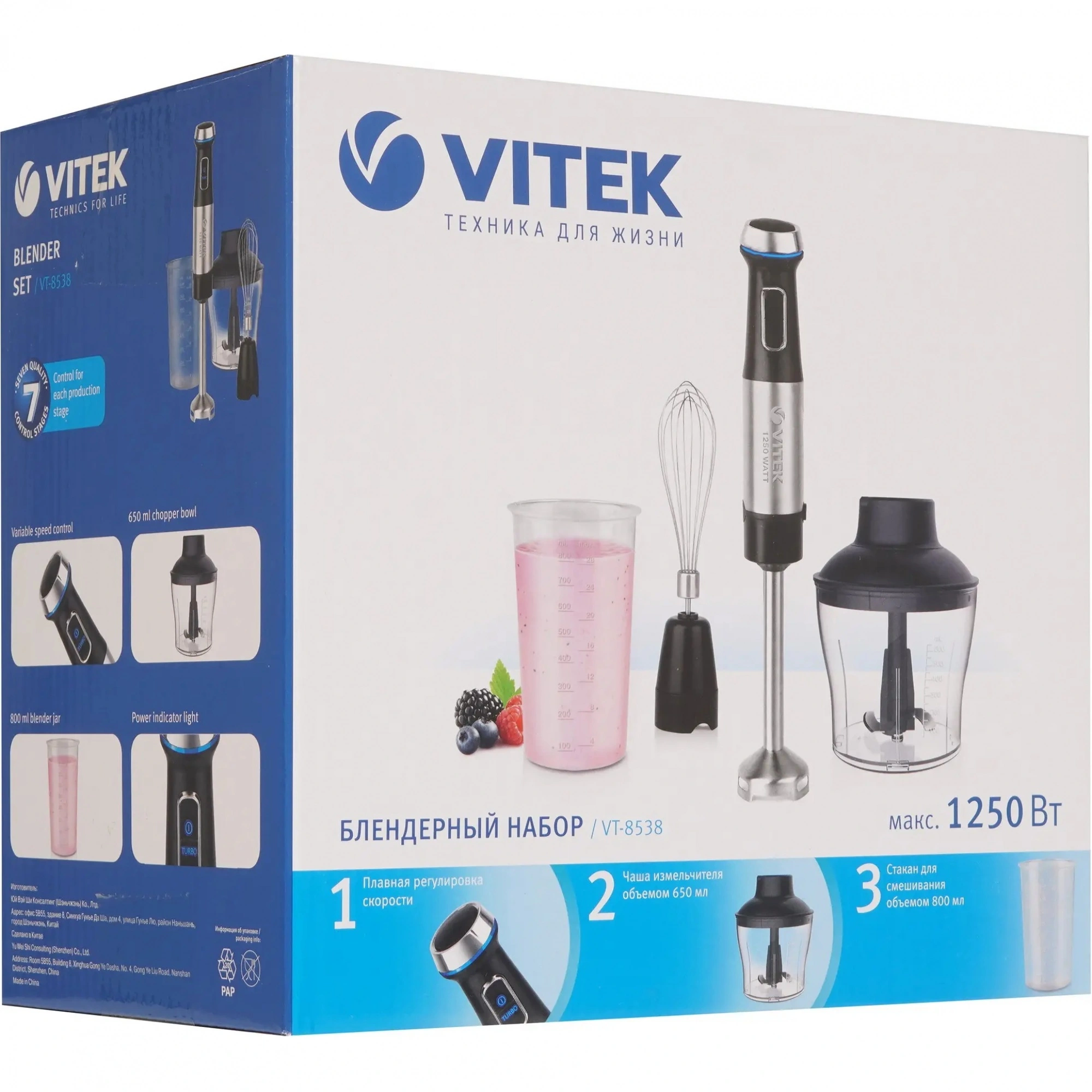 Блендер погружной Vitek VT-8538 - описание товара, его характеристики, фото и цены представлены на карточке товара. Чтобы купить этот товар по цене 1839 руб., свяжитесь с нами по телефону 8(812)426-98-99 в Санкт-Петербурге, или оформите покупку через корзину.